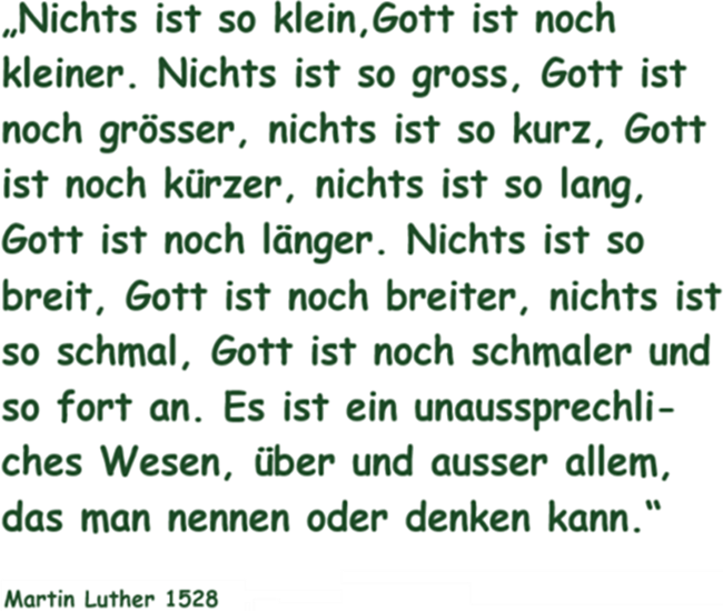 Im Absoluten aber fällt das Größte mit dem Kleinsten zusammen und darum ist dieses Größte nicht größer oder kleiner als etwas anderes (vgl. auch LUTHER 1520, s.o.). Wenn aber etwas nicht größer oder kleiner werden kann, ist es absolut genau. Die absolute Genauigkeit ist also das absolute Urbild (WOLLNY dto.). Für Cusanus als ausgeprägten ‚Einheitsmetaphysiker’' gebe es in Gott „nur ein einziges absolutes Urbild aller vielheitlichen sinnfälligen Wirklichkeit. Die Dinge streben danach, ihrem Urbild so nahe und ähnlich wie möglich zu sein.” (MEINHARDT 1979b). Das absolute Urbild schließe alle anderen Bilder in sich ein und besitze zudem in Ultimo (asymptotischer Näherungswert x = (0,1)∞) keine Eigenschaften.